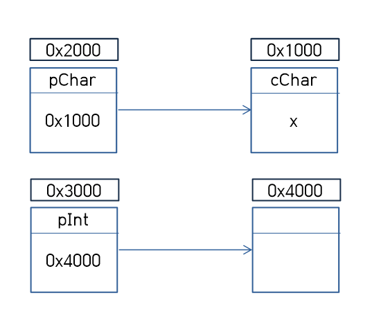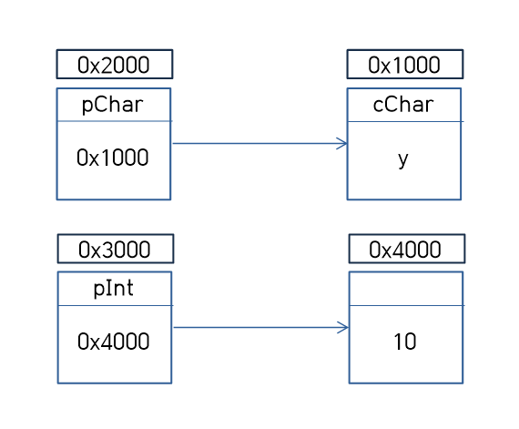 주소 참조 연산자 & 를 사용하는 것은 원레 있는 변수의 메모리 주소를 가져와 대입한다. 따라서 pChar는 'x' 문자를 담고 있는 cChar의 메모리 주소를 가지게 된다.